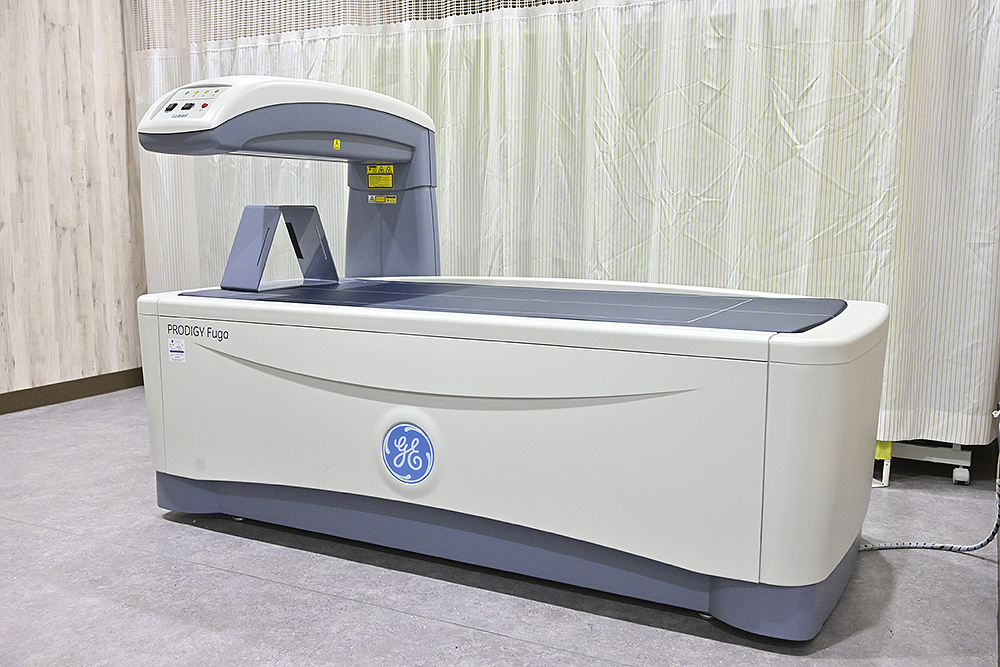 2025年4月にGE社製のDEXA装置を導入しました。骨密度検査は、骨を構成しているカルシウム量(骨量)を測定し、骨の強度を判定する検査です。当院の装置は、胸部レントゲンの約1/6程度の被爆量で腰椎や大腿骨の骨密度を“高精度”に測定します。10分程で測定でき、痛みもありません。