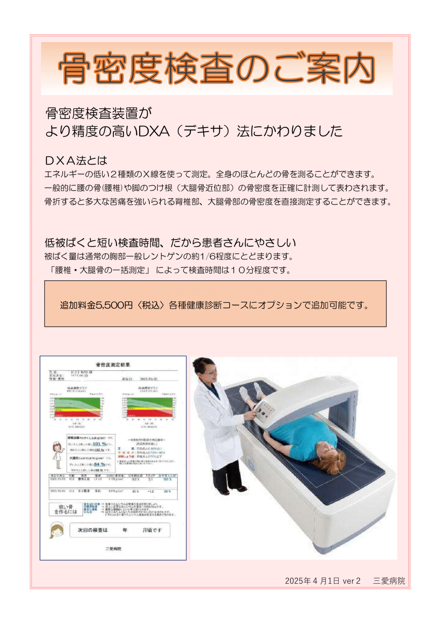 骨密度検査装置がより精度の高いDXA(デキサ)法にかわりました。