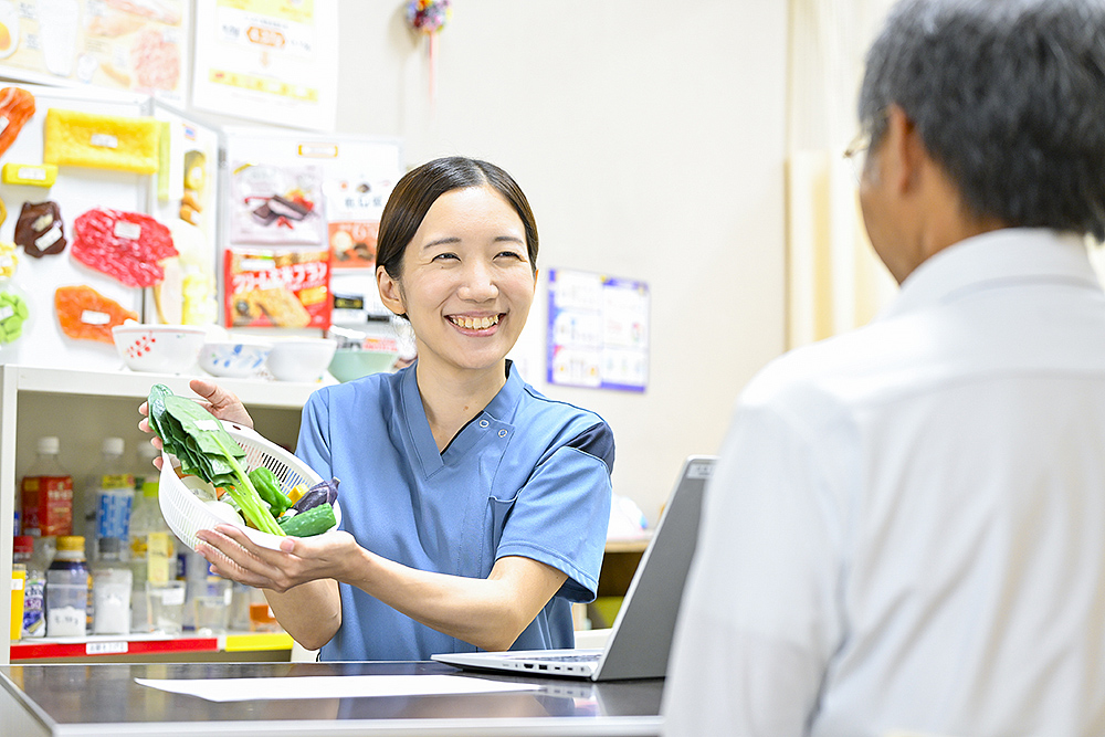 入院・外来の栄養指導、入院患者の栄養管理、厨房委託会社と連携し給食管理(職員・患者)を行うなど、業務は多岐にわたります。
